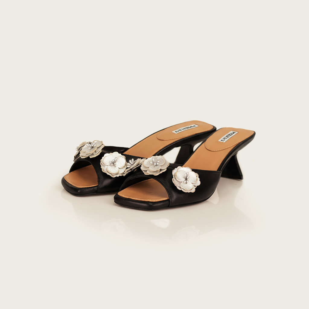 It's a 5 cm heel. Designed and made for Posdata:V specifically in Elda, Alicante. This town is famous for manufacturing luxury & high-end heels.